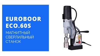 Магнитный сверлильный станок Euroboor ECO.60S предназначен для зенкования и сверления отверстий в металле кольцевым или спиральным сверлом диаметром до 60 мм. Для удобства при работе станок оснащен системой подачи охлаждающей жидкости, двухскоростной коробкой передач с масляной смазкой, электронной регулировкой оборотов, защитой от перегрузки и магнитным основанием (168x84 мм) с прижимной силой 1850 кг для надежного сцепления с поверхностью.